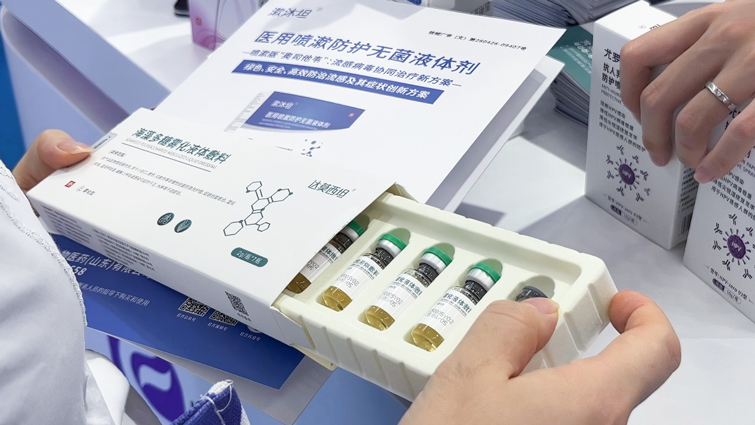 呼吸雾化与流感防治领域成为梵晨博生今年展会的新亮点:首次亮相的达莫西坦——绿色版“呼吸-雾化液”,以海藻酸钠、海藻糖为核心成分,兼具抗炎、保湿、化痰功能,适用于呼吸道干涩、水肿及术后气道并发症,成分天然,可与抗生素联用。